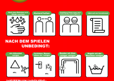 - Ausnahme: Turniere können fertig gespielt werden. Nach dem Turnier und den Reinigungs-/DesinfektionsArbeiten ist der Club sofort zu verlassen