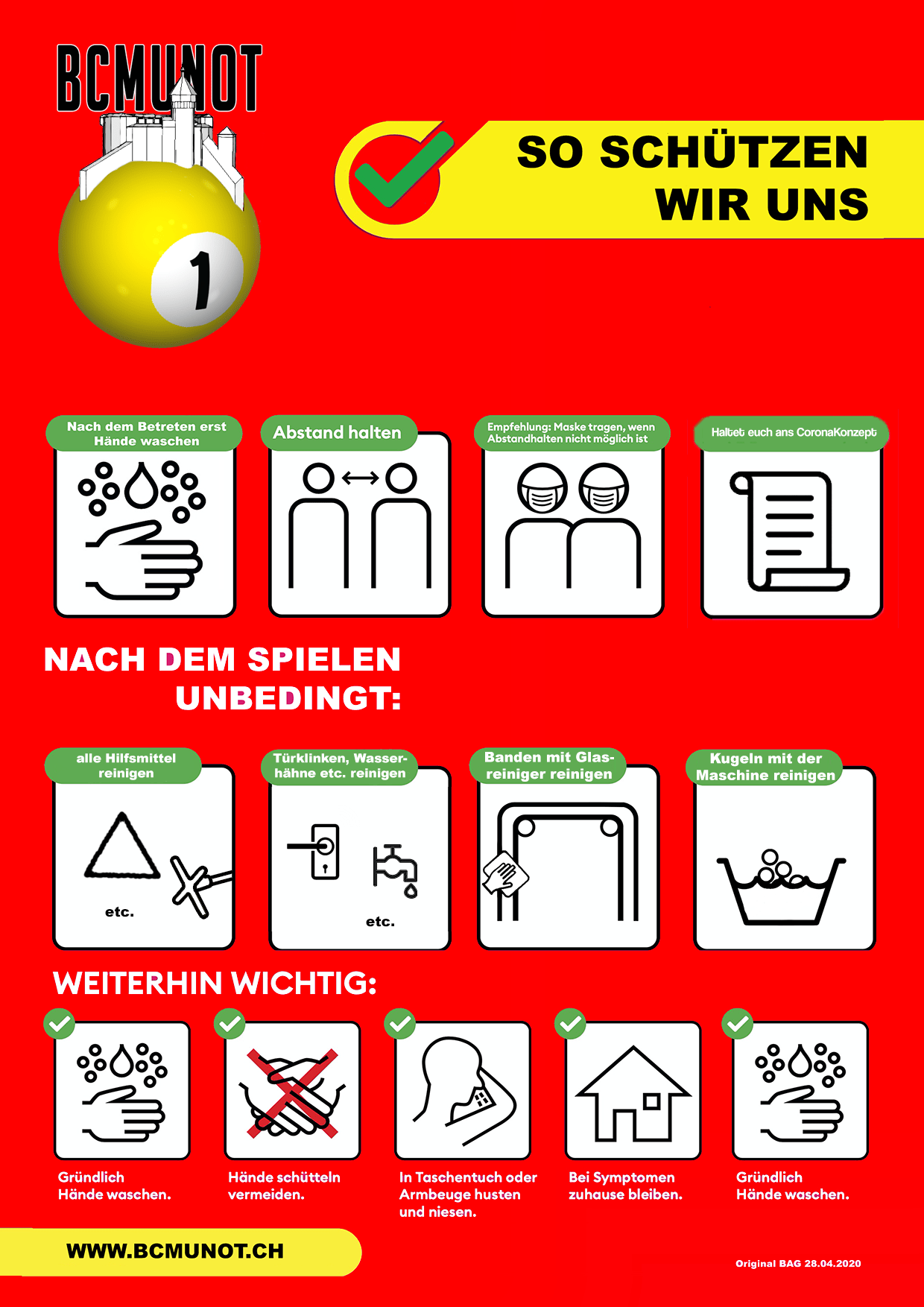 Ab sofort und bis auf Widerruf gelten folgende Regeln im BCMunot. Jeder muss sich daranhalten und ist selbst für die Einhaltung verantwortlich.